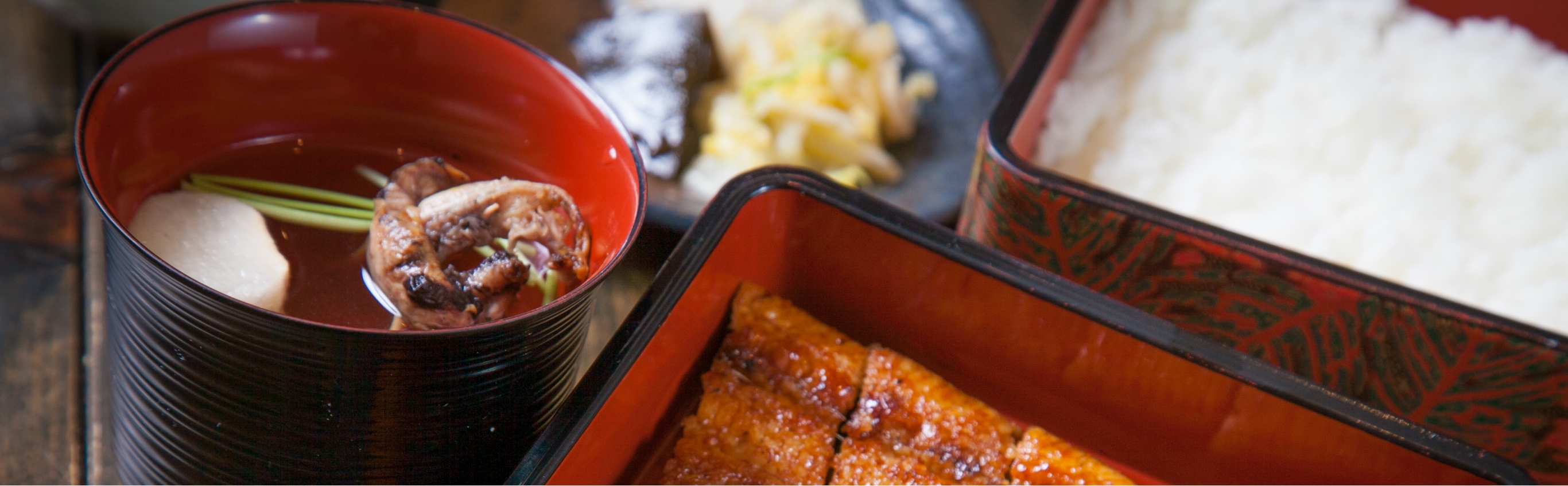 | 栄養成分表示 | (鰻重のみ100gあたり) エネルギー 197kcal、たんぱく質 7.5g、脂質 5.7g、炭水化物 27.8g、食塩相当量 0.7g |